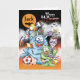 Pour les amateurs de football et de monstre. Deux monstres effrayants, éffrayants et drôles sont sur un terrain de football avec une balle de football et une tasse de gobelet dans la conception d'un crâne. Le gobelet est rempli de sang, et les monstres sont entourés de brouillard et de chauves-souris. Il y a une pleine lune d'orange dans l'arrière - plan qui peut être personnalisée. Une carte amusante pour les garçons et les filles.