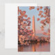 Le monument Washington s'élève au milieu des cerisiers en fleurs. Une étendue d'eau tranquille reflète les couleurs vives de la saison.
