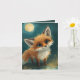 A sweet, wide‑eyed fox sits beneath a glowing yellow moon, surrounded by soft blue night tones and gentle wisps of grass. The illustration blends warm orange fur with cool, dreamy colours, creating a cosy, magical woodland atmosphere. Perfect for anyone who loves whimsical wildlife art and serene nighttime scenes.