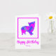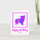 Silhouette de chien morkie en rose chaud fou et bleu brillant abstrait motif moderne. Le message d'anniversaire à l'intérieur peut être changé à tout ce que vous voulez. Personnalisez la carte avec le nom sur le devant.
