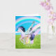 Un tableau numérique d'une licorne volante colorée qui atterrit sur l'herbe après avoir créé des arcs-en-ciel avec sa magie.