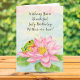 A charming choice for a July birthday, this design features a delicate pink waterlily blooming in the heart of summer, symbolizing love, renewal, and the beauty of growing through each season of life. The red-eyed tree frog adds a playful spark of wonder and happiness, bringing a sense of warmth and gentle joy to the scene. Together, the nature-inspired artwork creates a tender and uplifting keepsake, making it a heartfelt birthday card for a mother-in-law.