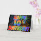 La façade de cette carte de voeux captivante, vibrante et passionnante présente un motif coloré inspiré par des feux d'artifice festifs, ainsi que le message "HAPPY 10TH BIRTHDAY !" avec un motif dégradé multicolore inspiré par un arc-en-ciel, sur un arrière - plan de couleur noire. L'intérieur comporte un message de salutation customisé, ou peut-être pourrait-il être effacé et laissé vide si un message doit être écrit à la main à la place. Une carte de voeux comme celle-ci pourrait être une façon amusante et heureuse de célébrer le dixième anniversaire de quelqu’un. [~Z0000355]
