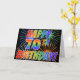 La façade de cette carte de voeux amusante, attrayante et vibrante présente un motif coloré inspiré des feux d'artifice festifs, ainsi que le message "HAPPY 70TH BANTHDAY !" avec un motif dégradé multicolore inspiré de l'arc-en-ciel, sur un arrière - plan de couleur noire. L'intérieur comporte un message de salutation customisé, ou peut-être pourrait-il être effacé et laissé vide si un message doit être écrit à la main à la place. Une carte de voeux comme celle-ci pourrait être une façon amusante et heureuse d'envoyer un message de voeux d'anniversaire à quelqu'un qui célèbre son 70e anniversaire. [~Z0000355]