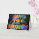 L'avant de cette carte de voeux passionnante, amusante et attrayante présente un motif coloré inspiré par des feux d'artifice festifs, ainsi que le message "HAPPY 72ND ANNIVERSAIRE !" avec un motif dégradé multicolore d'inspiration arc-en-ciel, sur un arrière - plan de couleur noire. L'intérieur comporte un message de salutation customisé, ou peut-être pourrait-il être effacé et laissé vide si un message doit être écrit à la main à la place. Une carte de voeux comme celle-ci pourrait être une façon amusante et heureuse d'envoyer un message d'anniversaire à quelqu'un qui célèbre son 72e anniversaire. [~Z0000355]