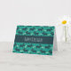 Une carte d'anniversaire conçue avec un motif répétitif avec un mignon chien souriant avec des oreilles disgracieuses et un os de chien. Arrière - plan vert. Message à l'intérieur duquel peut être customisé.