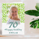 Carte photo de 70e anniversaire de la motif botanique de la feuille verte pour une femme qui célèbre son soixante-dixième anniversaire. Élégant motif de feuilles vertes. Ajoutez votre photo, nom et texte à l'intérieur ou effacez-le. Vous pouvez modifier le numéro d'âge.