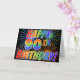 L'avant de ce design de carte d'amusement, attirant et vibrant de salutation comporte un motif inspiré par feux d'artifice de célébration colorés, avec le message le "JOYEUX quatre-vingt-dixième ANNIVERSAIRE !" comporter un arc-en-ciel multicolore a inspiré le motif de gradient, sur un arrière - plan coloré par noir. Les caractéristiques intérieures un message personnalisable de salutation, ou pourraient peut-être être dégagées et sont parties du blanc si on le désire pour écrire un message à la main à la place. Une carte de voeux comme ceci pourrait être un amusement, manière heureuse de célébrer quelqu'un le quatre-vingt-dixième anniversaire. [~Z0000355]