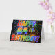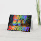 L'avant de ce design de carte d'amusement, vibrant et attirant de salutation comporte un motif inspiré par feux d'artifice de célébration colorés, avec le message le "JOYEUX quatre-vingt-quatrième ANNIVERSAIRE !" avoir un arc-en-ciel multicolore a inspiré le motif de gradient, sur un arrière - plan coloré par noir. Les caractéristiques intérieures un message fait sur commande de salutation, ou pourraient peut-être être dégagées et sont parties du blanc si on le désire pour écrire un message à la main à la place. Une carte de voeux comme ceci pourrait être un amusement, manière heureuse d'envoyer un message de salutation à quelqu'un qui célèbre leur quatrième anniversaire quatre-vingts. [~Z0000355]