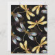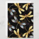 Motif sans couture avec or, bijoux, libellules brillantes avec ailes détaillées et pétillantes sur arrière - plan noir. libellule d'or.
