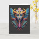 Make a bold statement with this stunning psychedelic deity mask design. Featuring sweeping golden horns, great feathered wings, and an ornately decorated face in rich teal, cobalt, violet and gold, this eye-catching print is packed with intricate detail that rewards a closer look every time.