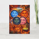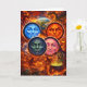 Dive into a world of dark fantasy with the stunning celestial moon faces greeting card this intricate design features for distinct expressive moon faces representing different elements set against a chaotic and fiery backdrop of dragons, witches and mythical beasts from the winking pink moon to the stern Orange sun this high detailed illustration is a masterpiece for any fan of the supernatural Gothic art
