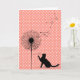 Silhouette de chat noir sur motif à pois orange et blanc avec pousses de pissenlit pour anniversaire général.