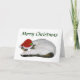 Photo d'un chat noir et blanc endormi avec un chapeau de Père Noël. Avant : Joyeux Noël à l'intérieur : J'espère que tous vos rêves de Noël se réalisent