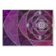 Un dessin en vitrail de spirales argentées et de tons prunes, sur un arrière-plan répétitif de fractales de spirale. Les spirales argentées convergent en un rose argenté, avec des perles rondes pour accents.