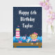 Cette carte d'anniversaire mignonne et amusante peut être personnalisée avec un nom ou un titre, comme fille, petite-fille, nièce, ami, etc. Il dispose d'un singe marin sur un pont en bois avec une mouette et un crabe. Dans l'arrière - plan il y a un phare rose et blanc, un oiseau mignon sur un voilier, des vagues de l'océan et un ciel étoilé bleu marine. Le texte combine des polices audacieuses et serif pour un look élégant et moderne.