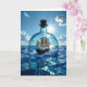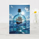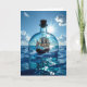 Une carte d'anniversaire sentimentale pour papa, avec une bouteille vintage avec un bateau à l'intérieur flottant sur la mer.