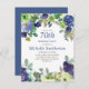 70e anniversaire invitation fête avec joli bleu marine et vert sauge aquarelle fleurs. Vous pouvez customiser le texte sur cette carte pour une fête d'anniversaire quel que soit l'âge que vous fêtez.