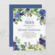 90e anniversaire invitation fête avec joli bleu marine et vert sauge aquarelle fleurs. Vous pouvez customiser le texte sur cette carte pour une fête d'anniversaire quel que soit l'âge que vous fêtez.