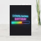 A bright neon computer loading bar in rainbow colors on a black background, indicating a download for a birthday celebration.