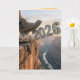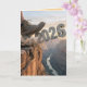 A man's hiking boot sends the year 2026 over a canyon cliff, revealing a breathtaking view of the river below