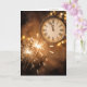 Party sparklers and a vintage clock indicate it's almost midnight for the New Year celebration