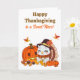This Thanksgiving card for a niece featuring a cute baby turkey and pumpkin surrounded by autumn leaves and candy corn turkeys creates a warm, festive way to celebrate the season. This playful fall design is perfect for sharing love, gratitude, and sweet holiday wishes with your niece, reminding her how thankful you are for her.
