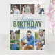 Carte d'anniversaire personnalisée pour n'importe quel âge. Le modèle photo est prêt pour vous à ajouter 8 de vos photos préférées et personnaliser avec le nom ou la relation de la personne d'anniversaire, comme le père, le fils, le frère etc. A l'intérieur, la carte indique "happy anniversaire" et vous avez également la possibilité d'ajouter votre propre message personnalisé. Ce design a un arrière - plan gris clair avec typographie bleue et verte.