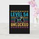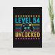 Drôle niveau 54 déverrouillé 54e cadeau d'anniversaire pour les amateurs de jeux et de jeux. Présente pour les hommes femmes garçons ou filles enfants et les enfants qui aiment jouer et jouer à des jeux. Design Anniversaire rétro Vintage Controller.