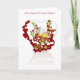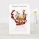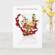 Carte de vœux d'anniversaire avec cœur et ruban de fleurs rouges de champagne. Avec remerciements à E.D.Resario. Joyeux Anniversaire en gallois
