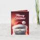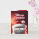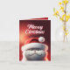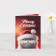 Carte de voeux de Noël pour les amoureux de les chats avec chatte courte britannique mignonne portant le casquette du Père Noël et salutations kitty personnalisées.