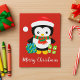 Envoyez une joie de vacances qui fond les coeurs avec cette adorable carte de Noël avec un pingouin gai dans un chapeau de Père Noël, emballé dans un foulard coloré et tenant des cadeaux emballés. Contre un arrière - plan rouge audacieux avec un élégant script "Joyeux Noël", cette carte est parfaite pour les enfants, les familles, les enseignants, les collègues et toute personne qui aime la joie fantasque et hivernale. Que vous soyez en train de répandre des sourires à des voisins ou d'ajouter une carte mignonne à un sac cadeau, ce design est sûr d'offrir des souhaits chauds de la façon la plus courtoise possible! Design de pingouin : par Prettygrafik Design (https://www.etsy.com/shop/Prettygrafikdesign)