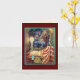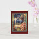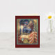 Envoyez un message américain patriotique avec cette belle carte de Noël chrétienne vintage. Cette carte de Noël dévotionnelle représente une vue de la scène de la Nativité dans un vitrail d'église avec le drapeau américain drapé sur la Bible. Le message à l'intérieur est "Que la lumière du Christ vous bénisse à Noël, et que nous soyons toujours reconnaissants pour les bénédictions de la foi et de la liberté dans notre pays." Personnalisez avec le nom de votre famille.
