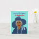 Cette carte classe est composée d'une femme afro-américaine avec un casquette et une robe bleu. Cette carte de Noël est parfaite pour envoyer à une grand-mère qui a une place spéciale dans votre coeur.
