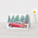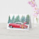 Cette vieille voiture rouge et cette luge donnent la sensation vintage d'un Noël d'antan. Faire une aventure en luge pendant les vacances était tellement amusant, surtout avec une douce chute de neige. À l'arrière de la voiture, un petit garçon tire sa luge. À l'intérieur, on trouve une vieille carte de vœux de Noël.