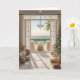 Cette carte de Noël sophistiquée offre une vue sereine sur l'océan encadrée par d'élégantes portes françaises, avec des ornements de vacances dorés et un sapin de Noël joliment décoré qui ajoute un éclat festif. La lumière chaude de la côte reflète un décor doré, créant un parfait mélange de tranquillité balnéaire et de glamour de vacances. Idéal pour les amateurs de luxe et d'océan, cette carte apporte la magie de Noël avec une touche côtière.