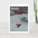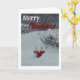 La neige fraîche sur une borne d'incendie rouge et jaune fait un gnome drôle de neige. Customisez le texte dans la carte à votre salutation de Noël préférée.