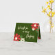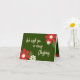 Carte de Noël florale rétro personnalisée mignonne en rouge, vert et crème. Design amusant et joyeux avec une ambiance vintage groovy des années 60 et 70 et une esthétique moderne contemporaine. Caractéristiques de lettrage script, qui peuvent être personnalisées. Par Kierkegaard Design Studio.