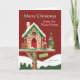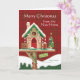 Ceci, Joyeux Noël de ma nouvelle carte à la maison de faire-part comporte une volière et un merle de fête mignons. La volière est placée contre un arrière - plan rouge de tartan et une colline de neige. Le merle minuscule piaule de l'intérieur de la volière, et un petit signe pend de lui avec les mots, juste déplacés.