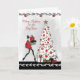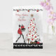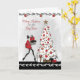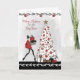 Carte de Noël moderne pour une chère belle-soeur, représentant une femme élégante habillée en rouge avec des talons hauts portant des cadeaux vers un beau sapin de Noël blanc décoré. Graphismes fournis par Crave Designs.