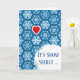 C’est Snow Secret ... Je t’aime. Snowflakes et Snowball design pour donner à votre mari pour Noël. Couleurs bleues et blanches d'un motif de flocon de neige avec boule de neige dans le coin du design et un coeur rouge. Personnalisez le message, verse à l'intérieur comme souhaité. Copyright © Shoaff Ballanger Studios, 2022.