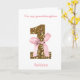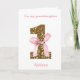 Une jolie carte pour le 1er anniversaire représentant un numéro un pailleté or avec un nœud coquet rose. Veuillez noter qu'il n'y a pas de véritable paillettage, mais un effet de conception pailleté. Vous pourrez facilement personnaliser le devant avec le nom du destinataire et celui de la fille qui fête son anniversaire dans une couleur rose doux. Il y a un doux message d'anniversaire à l'intérieur, qui peut également être personnalisé. Le dos présente le même numéro un pailleté or et le même nœud où vous pouvez ajouter l'année en dessous. Cela ferait un souvenir scintillant du premier anniversaire pour la fille qui le fête.