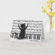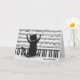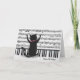 Black cat silhouette with bow collar on piano keyboard for general birthday.