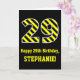 Carte Noir et jaune rayé "29"; 29e anniversaire + nom