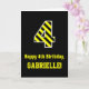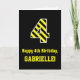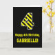 Carte Noir et jaune rayé "4"; 4ème anniversaire + Nom