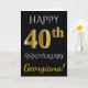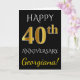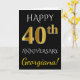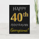 Carte Noir, Faux Or 40e Anniversaire de Mariage + Nom