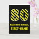 Le recto de cette carte de voeux d'anniversaire, qui attire l'attention et qui est audacieuse, comporte un grand numéro "80" avec un motif à rayures noir et jaune, ainsi que le message "Happy 80th Birthday," et un nom personnalisé. L'arrière - plan de l'avant est noir de couleur. L'intérieur comporte un message d'anniversaire personnalisé, ou pourrait être effacé et laissé vide si un message doit être écrit à la main à la place. Une carte d'anniversaire comme celle-ci pourrait être une façon amusante d'envoyer des voeux d'anniversaire à quelqu'un qui célèbre son quatre-vingts anniversaire. [~Z0000382]