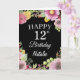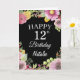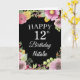 Carte noire 12th Birthday Watercolor Floral Flowers avec nom et âge personnalisés. Pour plus de personnalisation, cliquez sur le bouton "Customiser" et utilisez notre outil de conception pour modifier ce modèle.