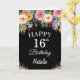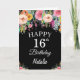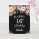 Carte noire 16th Birthday Watercolor Floral Flowers avec nom et âge personnalisés. Pour plus de personnalisation, cliquez sur le bouton "Customiser" et utilisez notre outil de conception pour modifier ce modèle.