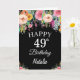 49th Birthday Watercolor Floral Flowers Black Card with personalized name and age. For further customization, please click the "Customize it" button and use our design tool to modify this template.